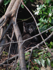 Then there is the colony of cats who lurk around what we call Cat Central. An area on the far bank of the rivulet just below Vaucluse Gardens. At one time there were reportedly some 8-9 cats and kittens around there, possibly of the same family. This dark long-haired one, who I photographed getting a drink, pops up along the rivulet at different places from time to time, always with a somewhat guilty demeanour. A stunning animal though. There are also some smaller black cats around the same area, possibly related, but short-haired, as you may be able to see in these pictures.