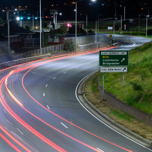 Nights have also tended to be frequently windy and cold throughout this year, which makes it both hard to get motivated and harder to get decent results. But with some really suberb still, clear weather this week and mild night, and have a go at one popular spot I'd never photographed from - the footbridge over the Tasman Highway connecting Rosny and Rose Bay, which affords some nice views of the Tasman Bridge.