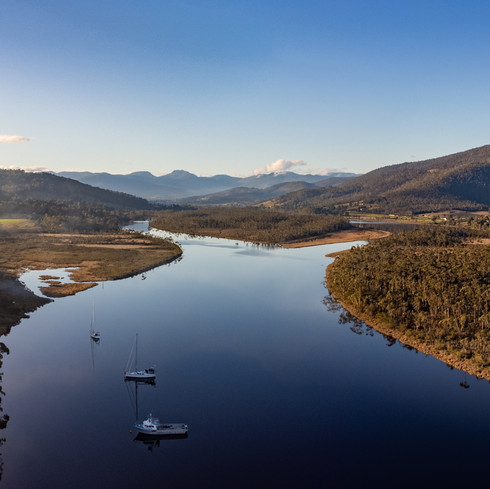 I've made a few roadtrips lately, trying to take advantage of free time and some nice winter weather to get some footage with the drone and some shots from the ground with the Panasonic Lumix GH5 as well. In the last week, I've taken a short trip down to Franklin on the Huon River on a spectacular Friday afternoon, and then today, a Wednesday, I took a bigger roadtrip with a friend up to Meadowbank Lake in the Southern Midlands via New Norfolk and a few other places on the road. On this occasion we set of in the morning, with my thinking being that we might catch a bit of the end of the jerry on the Derwent River over Bridgewater and New Norfolk. As it turned out, we probably got more fog than we counted on, but it yielded some great results.